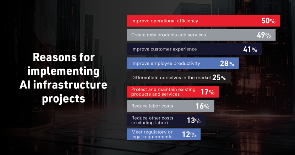 The reasons behind this infrastructure race go far beyond IT. According to Uptime’s survey, the top reasons organisations are investing in AI infrastructure include: