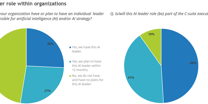 An IDC Quick Poll found that 53% of CIOs said their organization has or plans to have a single AI leader. Of those, nearly half (49%) said that leader will be part of the C-suite executive team.