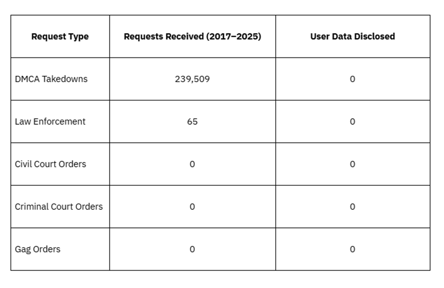 Between 2017 and June 2025, X-VPN received over 239,000 DMCA takedown requests and 65 law enforcement inquiries across jurisdictions—but confirmed that no identifiable user data has ever been shared in response.